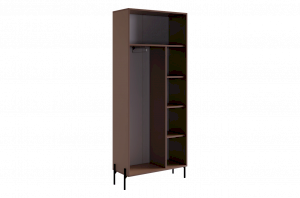Шкаф "Доминика" оснащен глухими фасадами, скрывающими за собой просторное внутреннее пространство. На одной стороне шкафа находится штанга для одежды, обеспечивая удобное место для хранения одежды на вешалках.