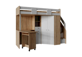 Благодаря универсальной сборке и универсальному углу, эту кровать-чердак можно легко адаптировать под планировку комнаты. Значит, даже в небольшой комнате она будет смотреться уместно и не займёт слишком много места, оставив пространство для игр или других активностей.