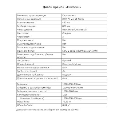 Диван Пиксель (Аквилон) – товар доступен к покупке в интернет-магазине chitinskiy-dommebeli.ru. Цена – 30 317 руб. без учета доставки. Стоимость дополнительных услуг и сроки получения мебели уточняйте у менеджера. Возможен безналичный расчет, оплата по карте на сайте.