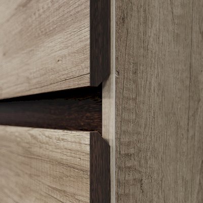 Кухня "Энигма" - это стильная модель, дизайн которой вдохновлен самой природой. Оттенки "дуб каньон" и "венге" выглядят очень натурально, словно созданы из настоящего дерева. Интегрированные срезы на фасадах заменяют традиционные ручки, они обеспечивают удобный захват, а также придают гарнитуру монолитный вид.